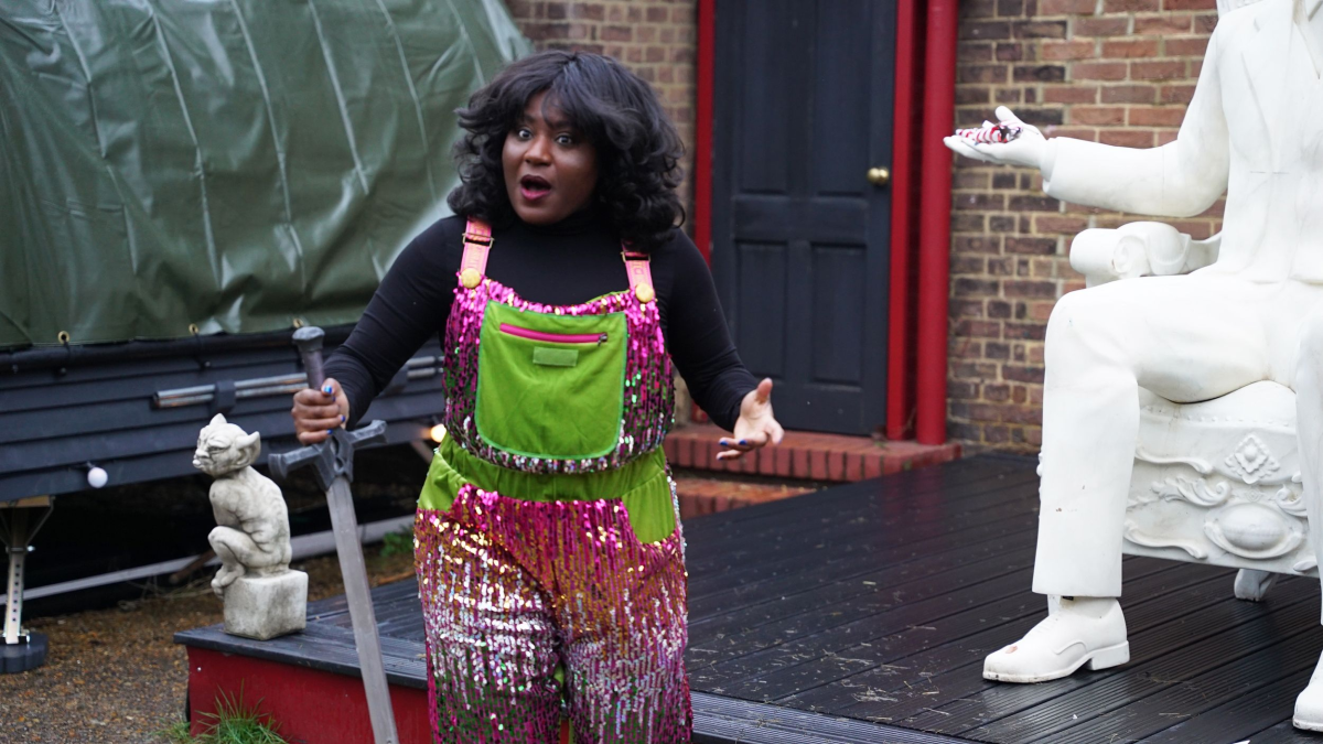 I would follow Susan Wokoma into hell itself, and it's kind of her to make that as easy as possible. The bright green, the pink sequins, these are important aids to visibility when striding through the acrid, smoke filled air of the underworld.