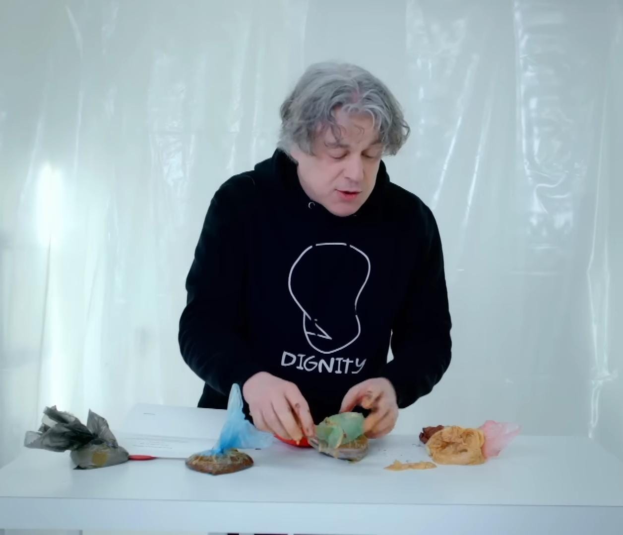 You see what I mean about suits? You're on a very silly show involving messy tasks and your dressed to manage a bank, but what else would this man wear?