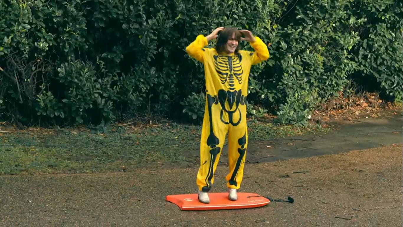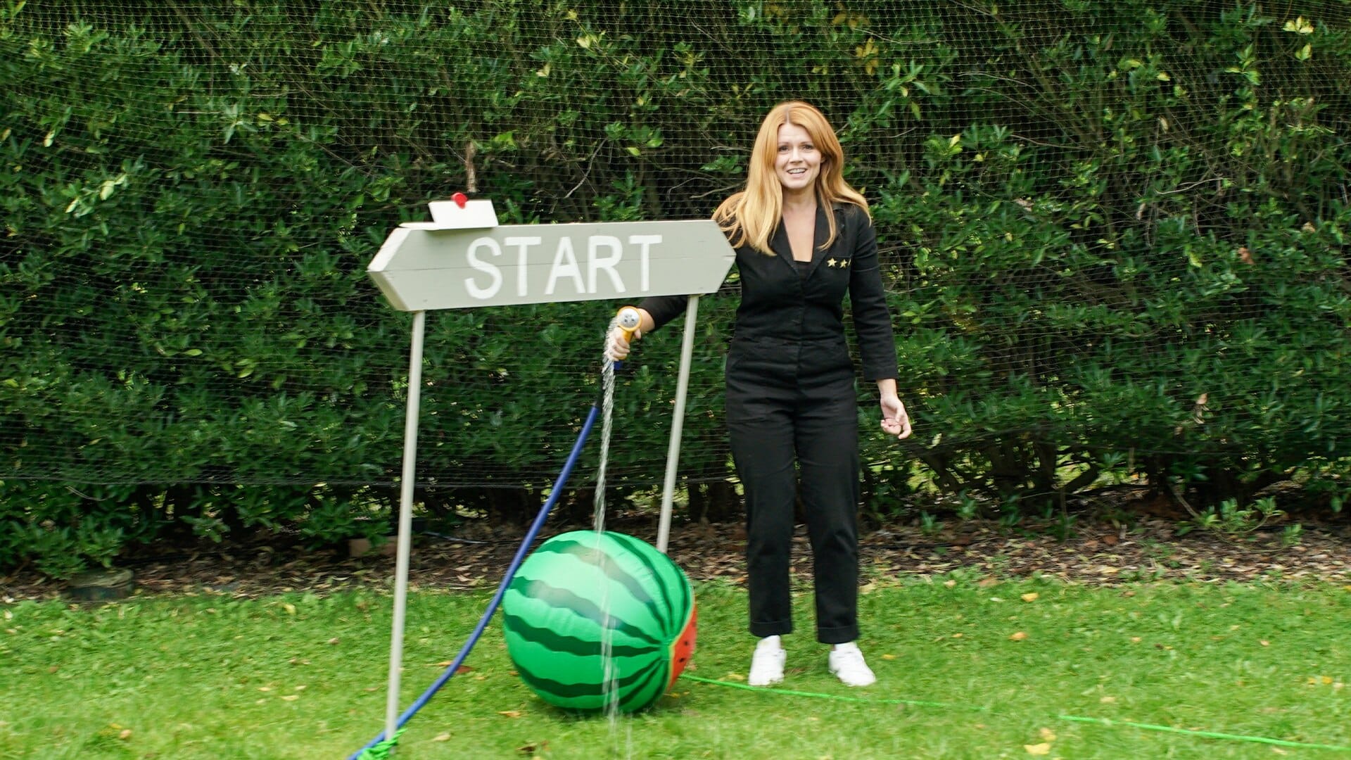 Boiler suits and jumpsuits get a lot of play in the Taskmaster house for a reason, and it's tough to pick favourites, but the acid wash denim is outstanding and also would you look at that hair? Hair counts as an outfit when it's this good.