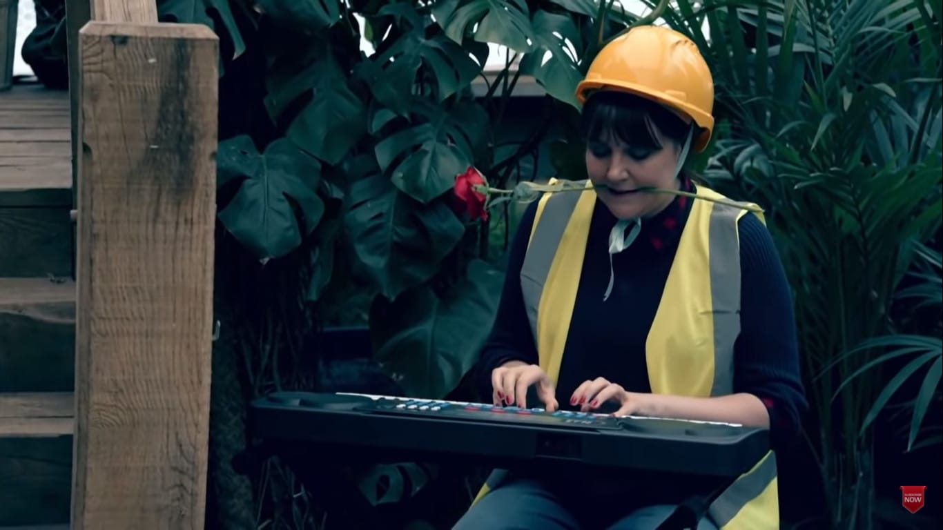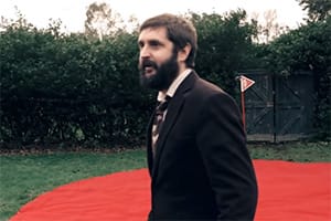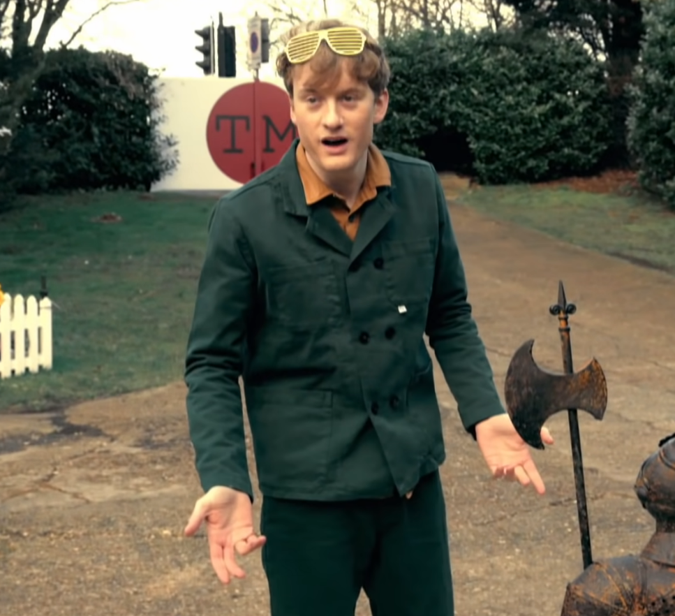 Many Parton Points here for Mike Wozniak here, coming in hot as the archetypal Befuddled British Man in the standard uniform of suit and tie.